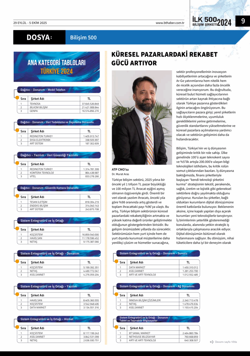 ATP CMO’su Dr. Murat Aras, Türkiye’nin 2026 BT sektörü görünümüne dair öngörülerini, ülkenin önde gelen haftalık BT ve ekonomi yayını BThaber ile paylaştı. Aras, Türkiye’nin BT sektörünün küresel pazarlarda rekabetçiliğini güçlendiren somut bulgulara değindi.