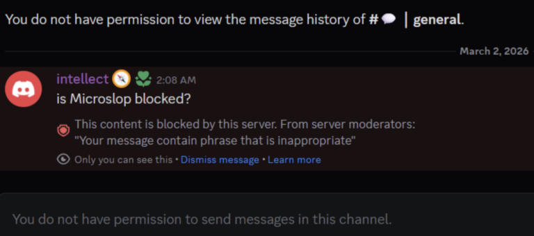 Microsoft’s official Copilot Discord server was temporarily locked after the company filtered the term “Microslop” — a nickname critics use for Microsoft — triggering a wave of user workarounds and escalating disruption. Users quickly bypassed the filter with character substitutions, prompting moderators to restrict access and hide message history. Microsoft later clarified the lockdown was a response to a coordinated spam attack, and that the keyword filters were a temporary measure rather than a deliberate attempt to suppress criticism.